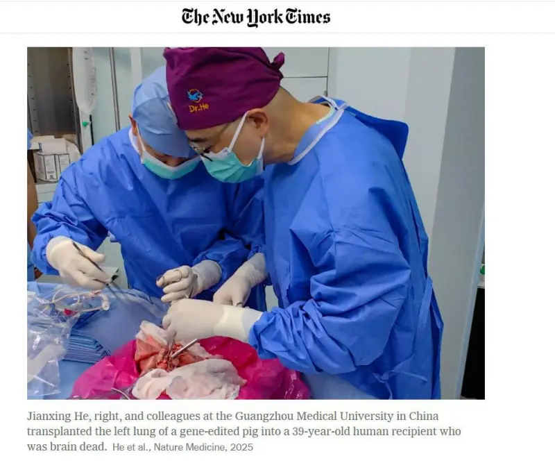 Учёные из Гуанчжоу пересадили человеку генномодифицированное лёгкое свиньи. Орган с шестью изменёнными генами проработал девять дней без отторжения и инфекций.