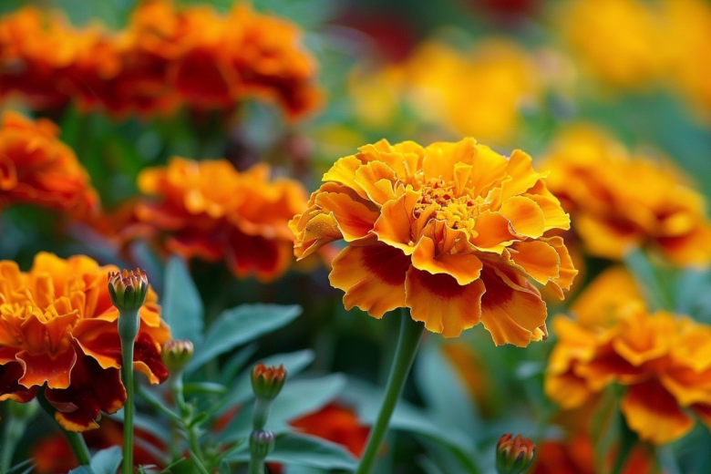 Бархатцы хорошо соседствуют с овощами, особенно с томатами и капустой, защищая их от вредителей.
