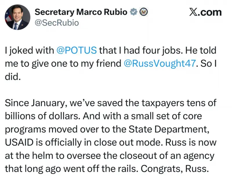 Он назвал организацию делом, которое давно сошло с рельсов и заявил, что с января были сэкономлены десятки миллиардов долларов американских налогоплательщиков.